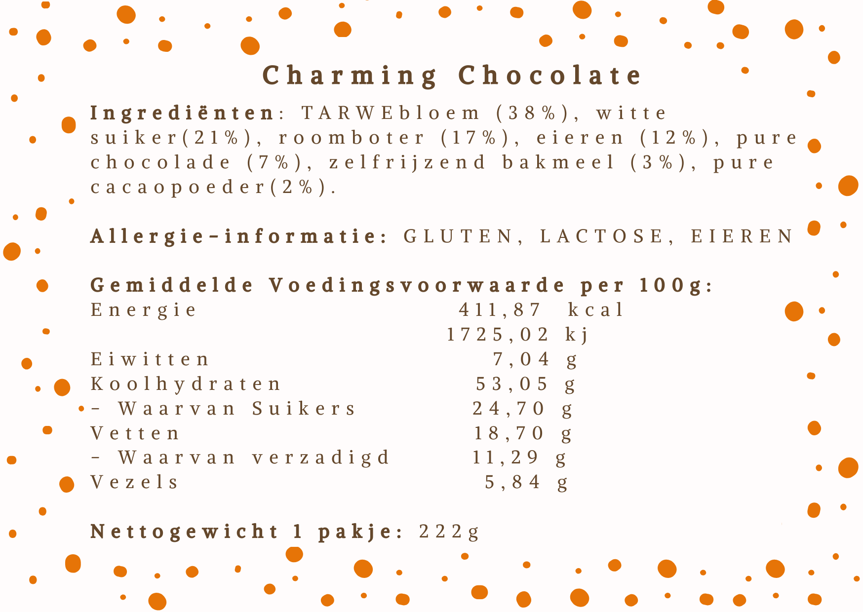 Indien je graag de voedingswaarde van de koekjes 'Charming Chocolate' wilt downloaden: