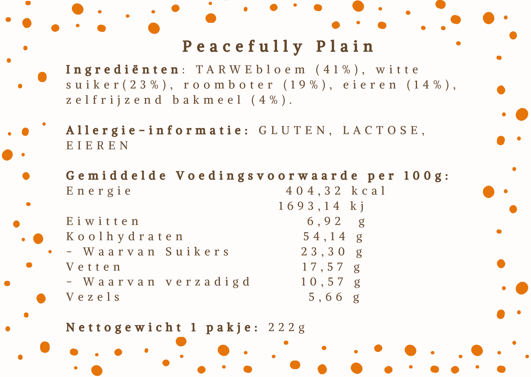 Indien je graag de voedingswaarde van de koekjes 'Peacefully Plain' wilt downloaden: